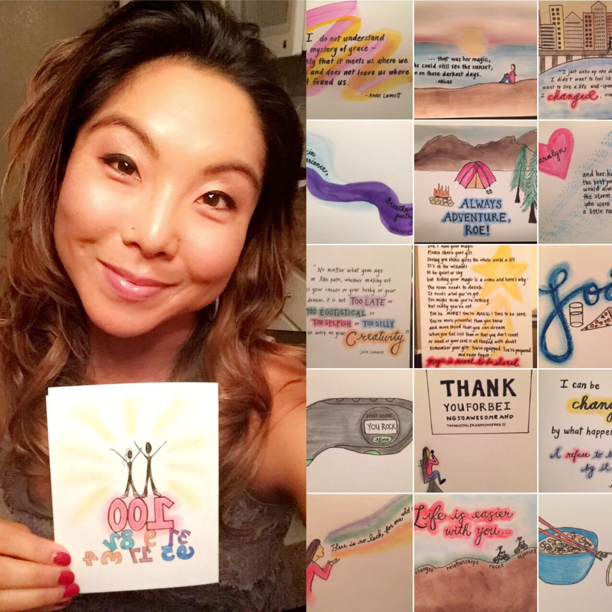 “It’s bringing me more joy when I have someone I’m intentionally creating for. It’s one thing to create art, but when you can use your art as a tool to encourage and speak life into another, it’s far more rewarding. I would’ve never imagined the reciprocity of love from this project and the emails and messages I’m receiving back from people overwhelm my heart. I’m discovering the power of our words. Haruko emailed me to thank me, and her words made me laugh and cry, all in the span of two minutes. I am blown away by the generosity of spirit and what can transpire with the simple act of making a card with love.”