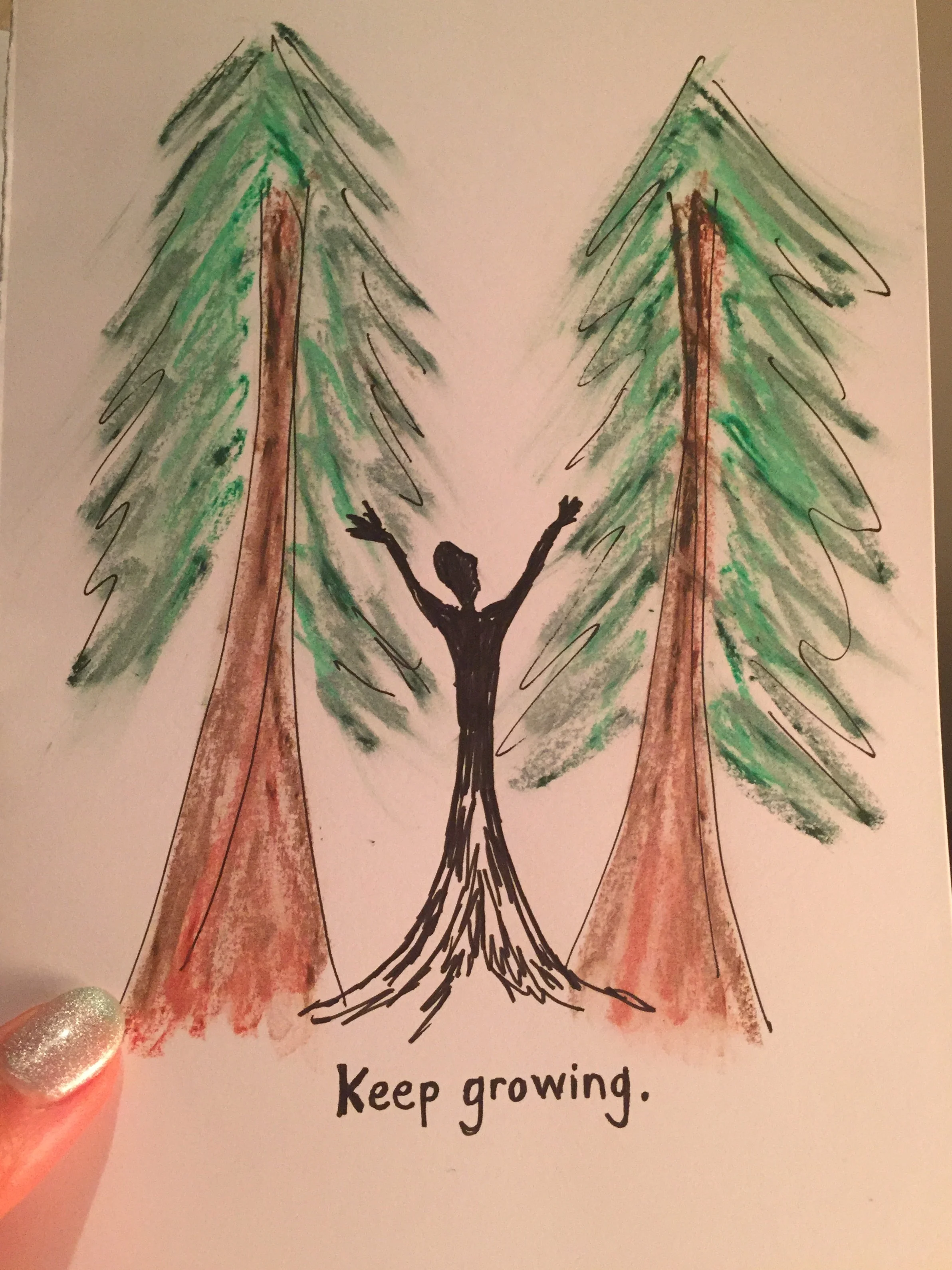 Day 1's card was completed at 11:30 pm on July 1, 2016 with the simple message- "Keep Growing." Day 2's card was a rectangle labeled 'comfort zone' and a stick figure standing far outside of it. It was a reminder for me to step outside of my comfort zone. These were the small, subtle ways my intuition was gently telling me that the innermost part of myself was striving for more in my life. That I needed more challenge and creativity than I was experiencing at my current job, and that I needed to take a leap professionally and personally to fulfill a deeper calling.